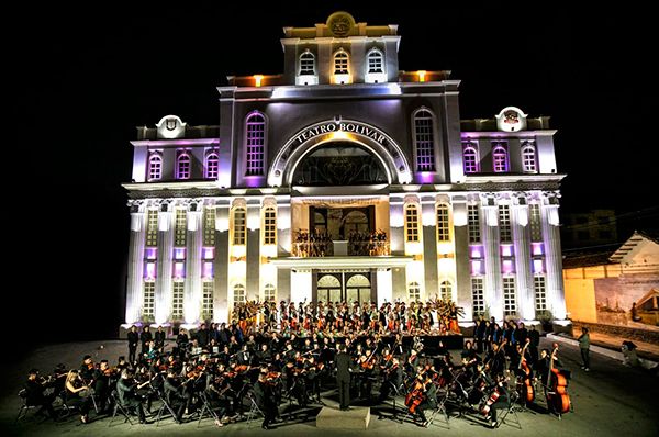 | Orquesta Sinfónica Municipal de Loja en el Teatro Bolívar. |
